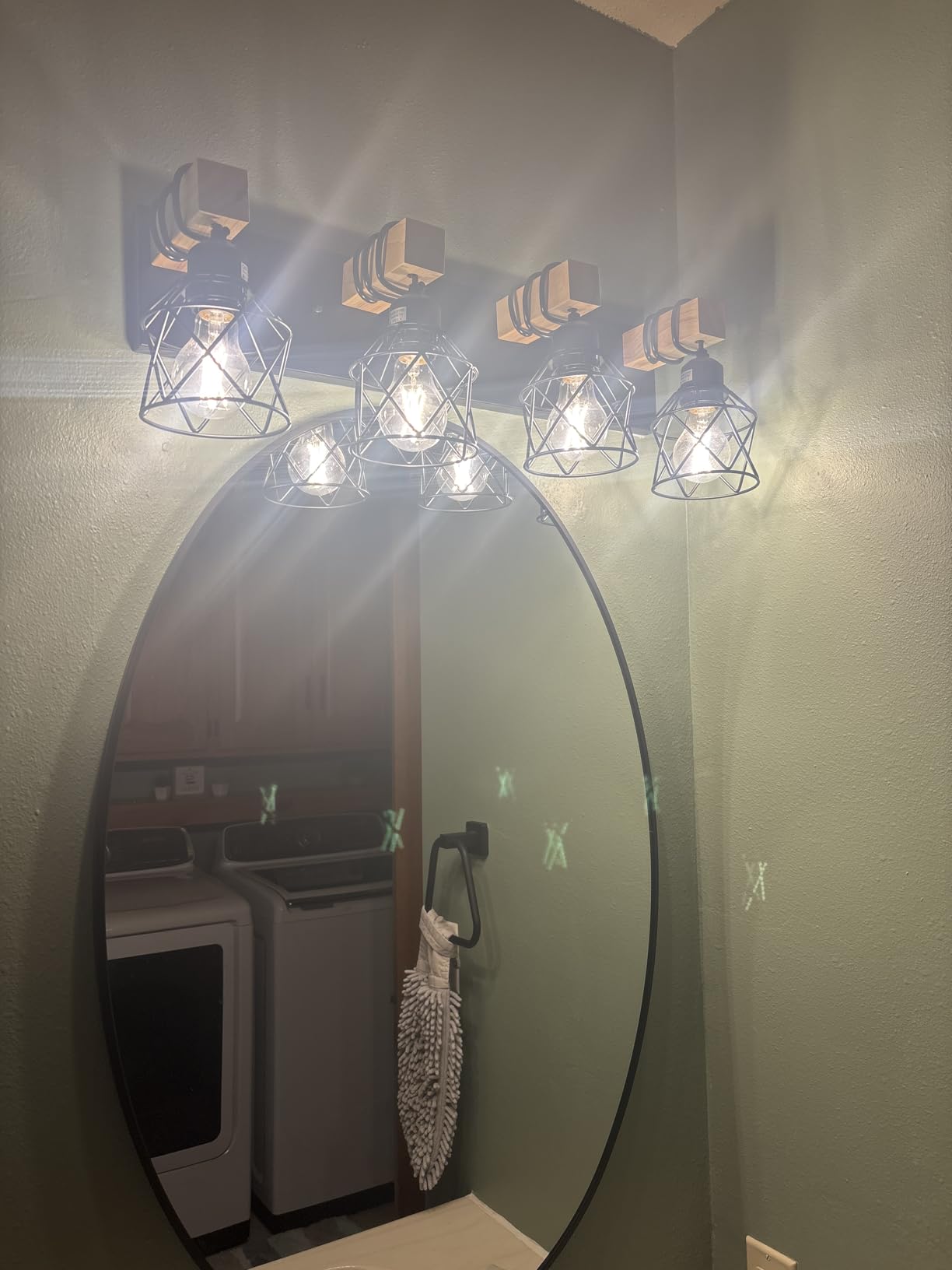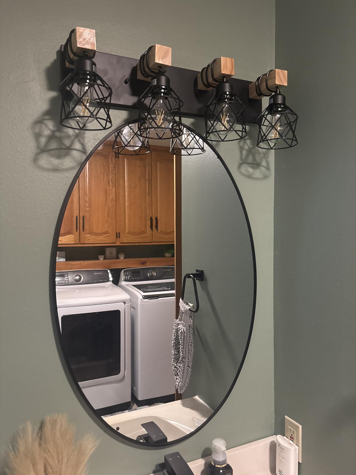 Bring warmth and character to your space with this farmhouse bathroom light fixture. The combination of solid wood accents and a matte black metal cage creates a timeless rustic appeal, casting a unique light and shadow effect for added visual interest. Whether you're updating your bathroom or revamping your vanity area, this fixture adds charm and style with a vintage-inspired touch.